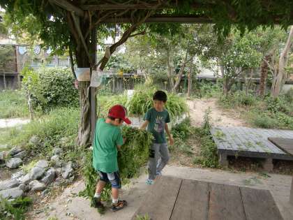 放課後,枝を切っていると,男の子がやってきて,切り取った枝を枝捨て場まで運んでくれました。手伝ってくれてありがとう。とても助かりました。