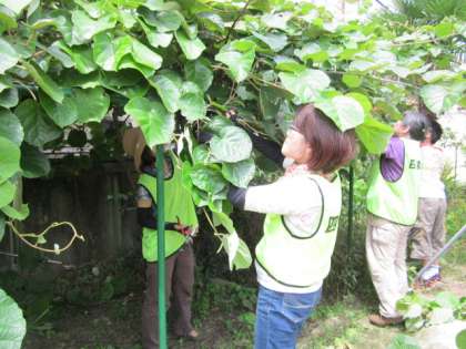 いつも中心になってくださってる方が来られておらず、キウイの枝を伐ることが、今日の作業内容ということを聞いてきてくださっていました。
