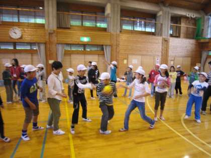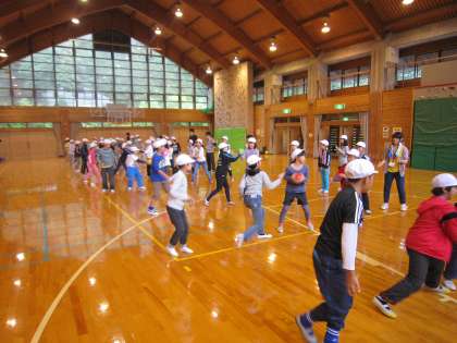 山の家の三日目は、登山の予定でした。一番苦しいかもしれませんが、楽しみにしていた子もたくさんいたことでしょう。でも、雨が降ってしまったので、朝は体育館で、いろいろなゲームをしました。体をみんなで動かせば、それはそれで楽しく過ごす5年生です。