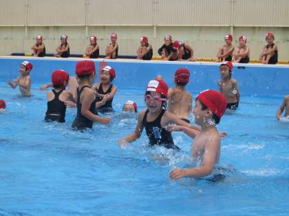 きょうの「みずあそび」は,新しい遊びをしました。