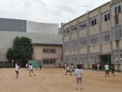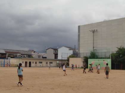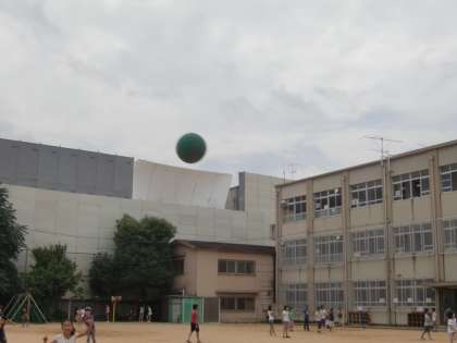 今日,やっと外遊びができます。超蒸し暑い中でも元気に遊ぶ子どもたちは,汗をいっぱいかきながら大奮闘です。