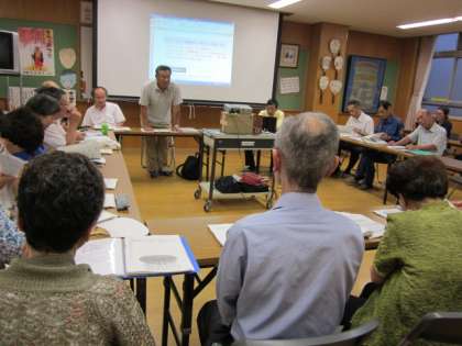 地域の方が集まられ、避難所運営についてのマニュアルを作成する会議がありました。