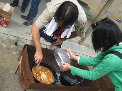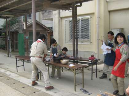 この活動は,「日本ボーイスカウト京都第42団」に所属されている本校の保護者,地域の方々が中心となって,本校の子どもたちのために,本格的な野外料理を伝統的に,毎年提供してくださっています。本当に,ありがとうございます。