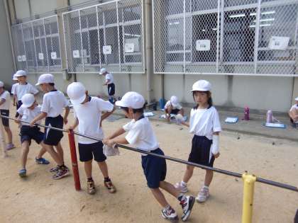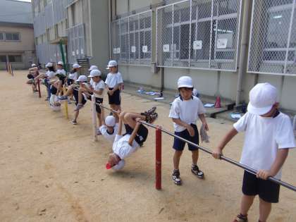 指導計画がそうなっているので仕方のないことですが,今日みたいに暑い日の鉄棒の学習は辛いですね。