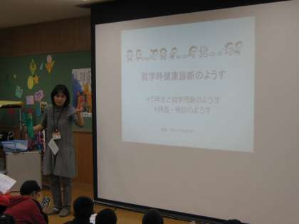 5年生が,来年度入学される子ども達の手をひき,健診の案内,お手伝いをします。