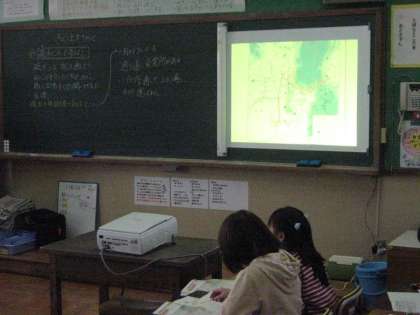 どの学年の教師も,日常的に活用して,子どもの学力を高めるために,資料をプレゼンテーションで作成したり,映像や写真を提示したりして,工夫がなされています。