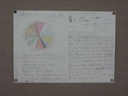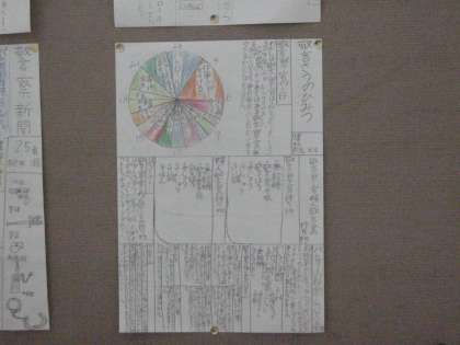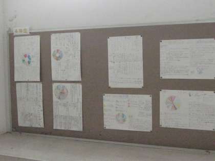渡り廊下の掲示板。そこには,子どもたちのそれぞれに創意工夫した作品が掲示されています。その一つを紹介します。