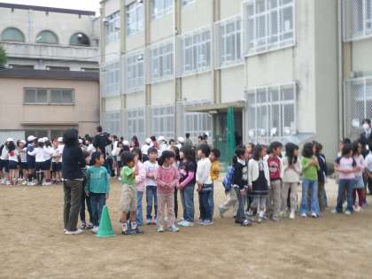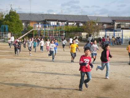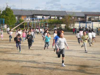 8時25分の音楽とともに,全員校庭に出て,8時30分朝ランニングの始まりです。