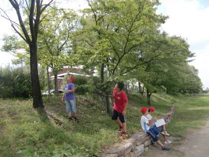 子どもたちは,以前春に来てスケッチした場所と同じ場所を探り当てて,夏の様子をスケッチします。いわゆる定点観察です。季節の移り変わりがよく分かったようです。