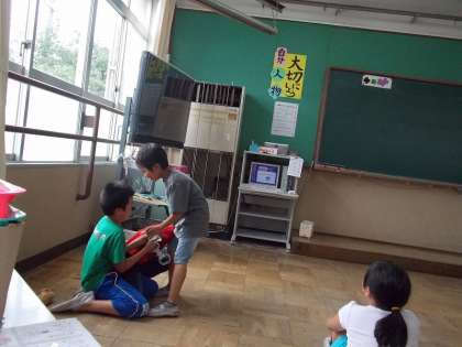 劇を発表したグループは、小道具作りを頑張りました。