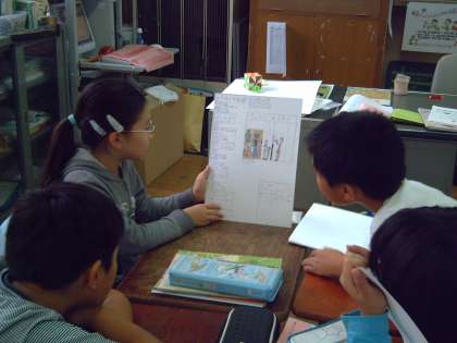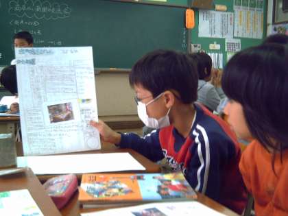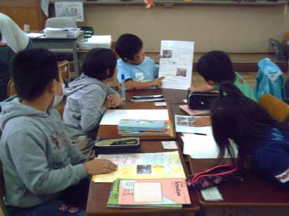 自分だけが見付けてきたことを,グループの友達につたえることをとても楽しんでいました。普段よく買い物に行くお店のことでも,知らないことがたくさんあって,交流会はとても盛り上がりました。