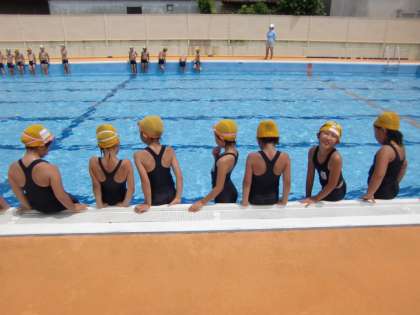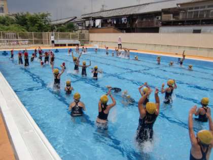 午前中のプールは低学年です。1・2年生が一緒ですから,お兄さん・お姉さん格の2年生は頑張らないとね。