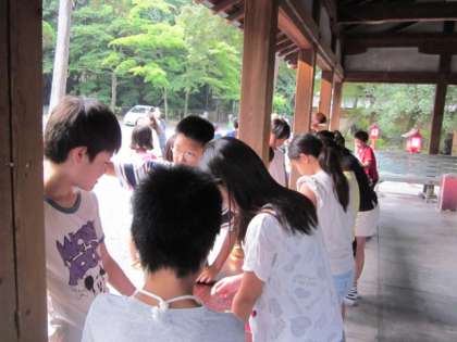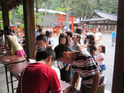 終わったら、みんな、さっと並びにきます。スタンプ係の仕事開始です。