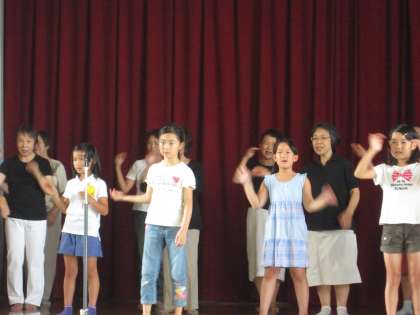 音楽隊に引き続き、手話のリハーサルも行いました。民生委員の皆さんに教えていただいた動きを確かめながら、楽しそうに練習しました。本番も楽しみです。