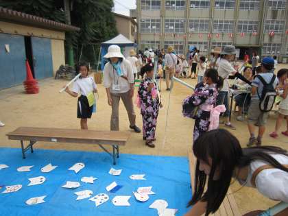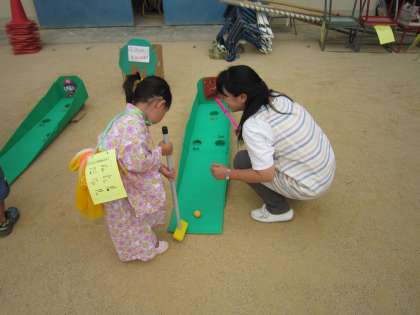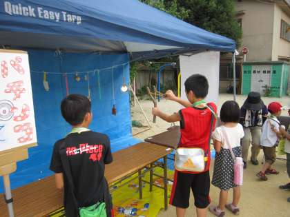 3年生保護者の「さかなつり」。1・2年生の「パターゴルフ」。ボーイスカウトの「パチンコまとあて」。なかなかどのコーナーも思うようにはいかないようです。何回もチャレンジしている子もいたかも!?