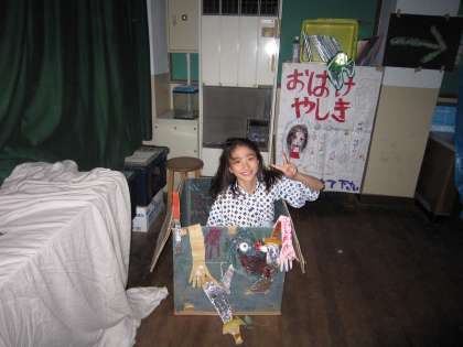 毎年6年生保護者が理科室で「お化け屋敷」のコーナーをしてくださいます。今年も、真っ暗な中で、ドキドキのお化け屋敷でした。写真は、明るく写っていますが、本当は真っ暗です。お化けをしてくれた6年生もご苦労様でした。