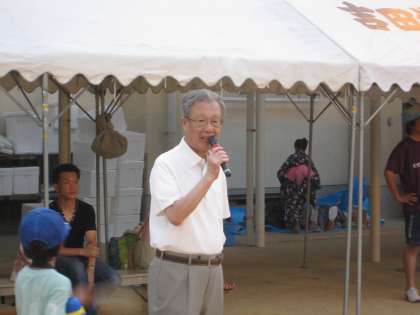 地域を代表して自治連の会長さんから、閉会のあいさつをいただきました。今年の夏まつりは、無事にお終われてホッとしています。地域の皆さん、PTAの皆さんありがとうございました。