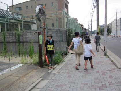 東一条通りを安全に渡れるように交通整理をしてくださっている係り、駐輪場でのお係りです。時間を決めて交替してたくさんの方が立ってくださっています。