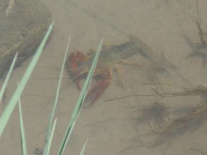 子どもたちが来ない池で今一番大きな顔をしているのがザリガニです。そりゃ,天敵ともいえるザリガニハンターがいないんですから,のさばって態度がでかくなっても仕方ありません。