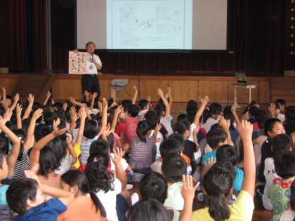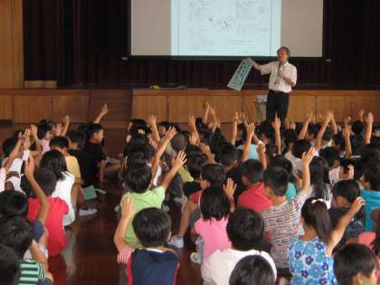 今日の朝会では,校長先生から「かっこいいしきん」の説明がありました。自分たちが2年生の時に書いた「かっこいい人の姿」を思い出した子どももいました。「かっこいいしきん」の中から校長先生が取り上げて発表すると,「できている」と手を挙げました。今日,手が挙がっていなかった人もこれからががんばりどころです。話を聞く姿勢は立派でした。