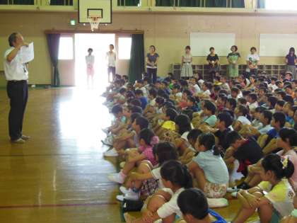 朝会では,「かっこいい姿」についての話がありました。昨年度自分たちで書いた「かっこいい姿」を今年度は実施していこうというものです。生活リズムや授業中の様子などまだまだ夏休み気分が抜けないようなところもありますが,これから少しずつしっかりと取り戻していけるようにがんばっていきます。