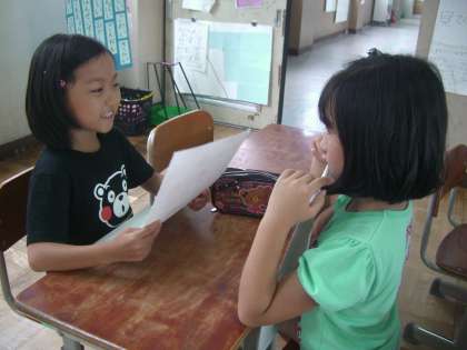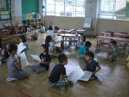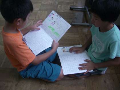 教室で勉強しました。友だちと一緒に話していると,どの子も自然と笑顔になるようです。今日からまたみんなで力をあわせて頑張っていきたいと思います。