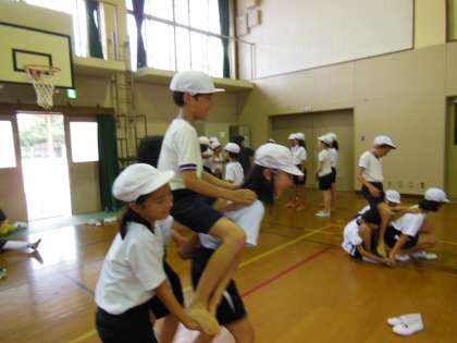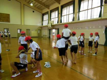 運動会の騎馬戦に向けて,今日初めて騎馬を組みました。初めてなのに,あっという間に騎馬で動き回ることができました。これからの練習に,こうご期待!