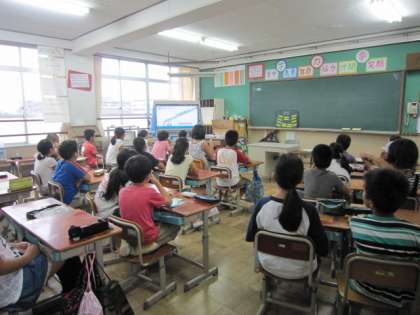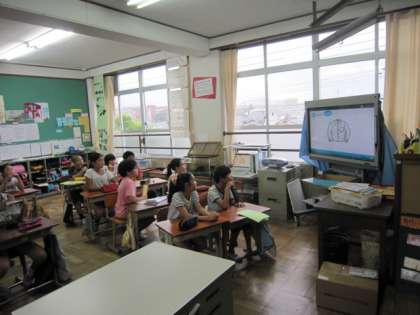 今日の昼学習は英語です。外国語活動が,まだ新しい単元に入っていないので,「バナナチャンツ」をしました。4年生の時に取組んでいたことがあり,子どもたちは「なつかしい〜」と言いながら元気よく“banana”や“building”とチャンツを言っていました♪