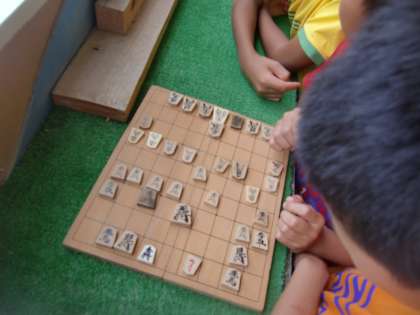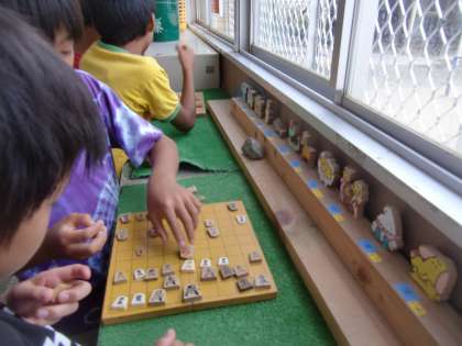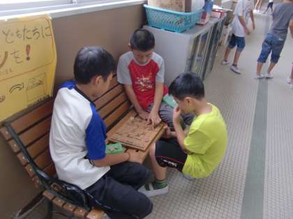 四錦には雨が降って運動場で遊べない時だけ貸し出すゲームがあります。オセロ・将棋・花札あたりが人気なんですが,今日は将棋ばっかりです。それからもう一つ。以前から女子はほとんど借りに来ません。