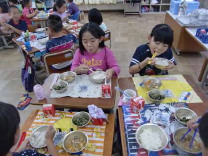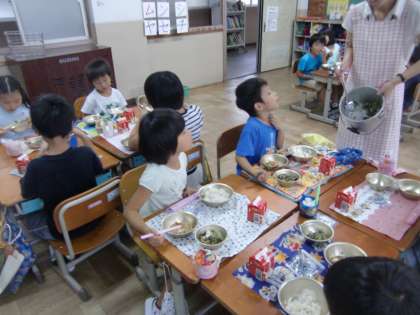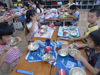 今日は全然外遊びができません。汗かいて体をいっぱい使って遊ぶことがなかった雨の日の子どもたちの食欲はというと…