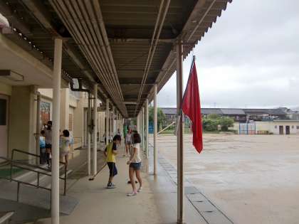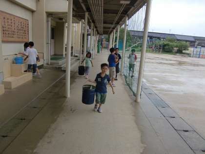 午後になっても雨が上がりません。たくさん水を含んだ運動場にはあちらこちらに水たまりができています。今日はもう下校時まで外遊びは無理みたいです。