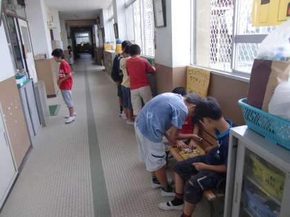 今日も運動場が使えません。昨日に引き続き,職員室前の廊下は雨降り用のゲームに興じる『サロン』,しかも今日も『男子専用』状態です。将棋とかオセロとかは女子にはあまり人気がないんでしょうか。