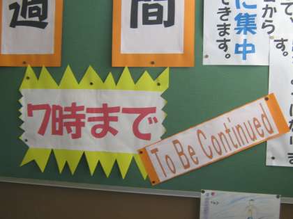 3年生の掲示板には「To Be Continued」という紙が貼っています。その意味は・・・?生活見直しを習慣にしていこうということです。ふと立ち止まって見ている児童も多いです。