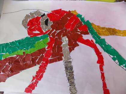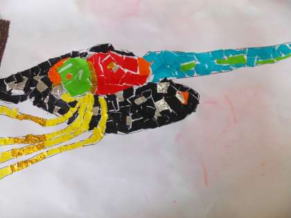 複雑なトンボの体をはり絵で丁寧に表わしました。