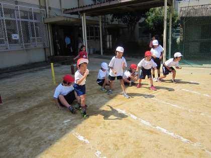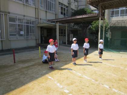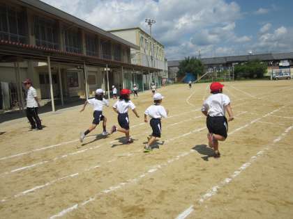 晴天のもと,白いラインが引かれたコースを思いっきり走りました。