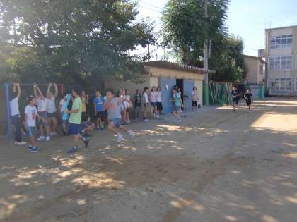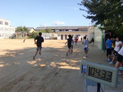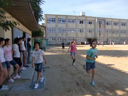 6年生が秋風の中を走っています。『朝ランニング』です。