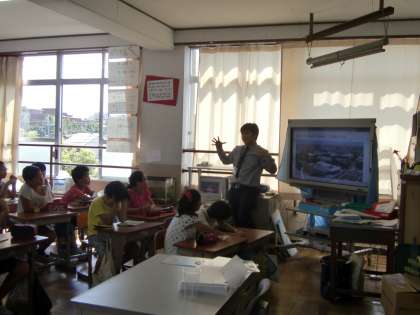 ウィリアム先生,どうぞよろしくお願いします。四錦の子は,「間違っても英語を使おうとする子どもたち」です。