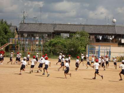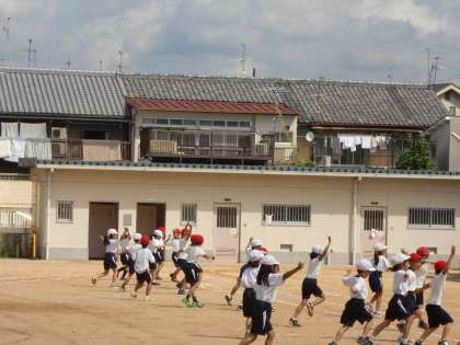 2年生が運動会の練習をしています。団体演技『よさこいエイサー』です。