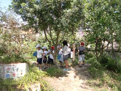 今,ビオトープに問題を書いたカードがたくさんぶら下がっています。