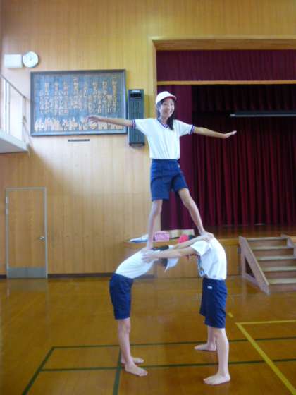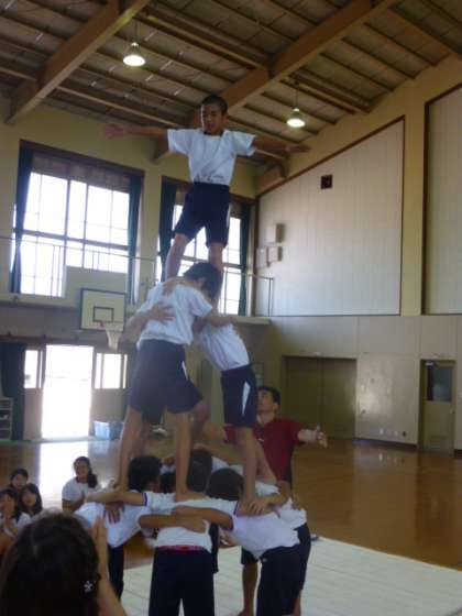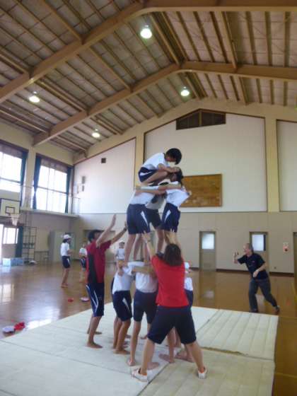 ラストの大技「三重塔」に挑みました。隣の人と立つタイミングを合わせたり,肩の高さを合わせたり,気を付けることはたくさんです。
