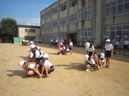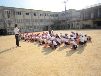 運動場での初練習