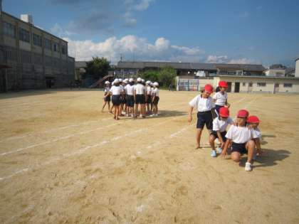 今日の騎馬線の練習は,初運動場でした。白組赤組でいろいろ作戦をたてて騎馬を組み,運動場を駆け回りました。