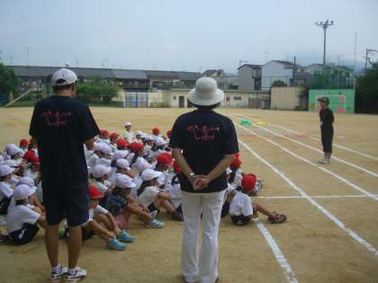 障害物走の練習をしました。1年生が走るときは,2年生が準備を手伝いました。走ってきた1年生の子に「ここまでやで!」「ここに置きや!」と熱心に教えてくれる2年生。さすが上級生です。1年生のお手本になれるように来週の合同練習も頑張ります。