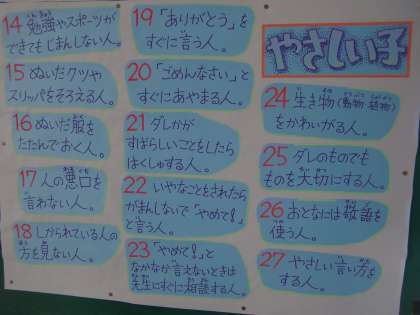 *全部大切な例ですが,中でも22・23は「いじめのない学校づくり」という点から見て特に重要視したいと思っています。