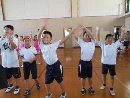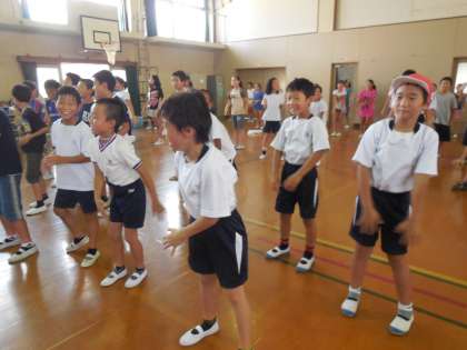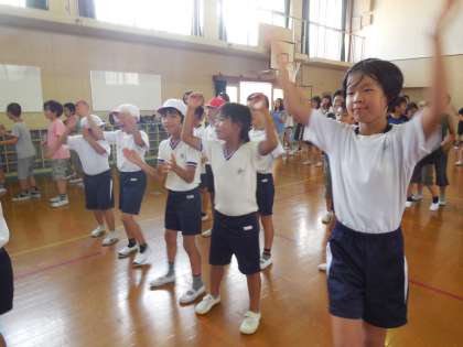 今日の中間休みは,運動会の全校ダンスの練習でした。