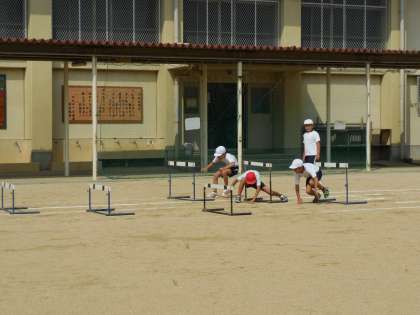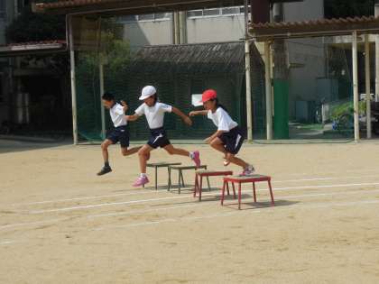 3年生に続いて,4年生も障害物競争「山あり?谷あり?4年生バージョン」の練習をしました。