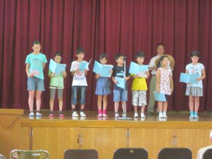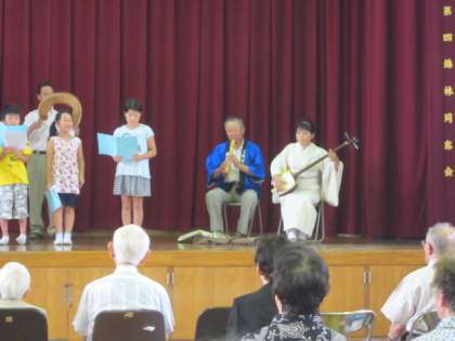 「こきりこ節」では、民謡の先生に賛助出演していただき、三味線と尺八の生演奏をバックに歌いました。子どもたちを指導した本校の橋本教諭も「ささら」で参加しました。参加された皆さんには、楽しんでいただけたようです。
