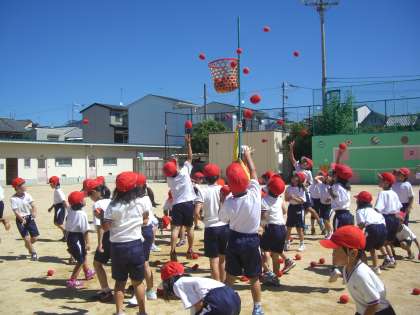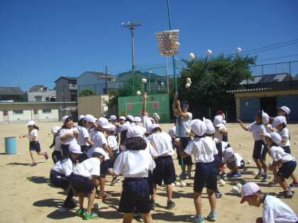 今日は,1年生と一緒に2回目の玉入れの練習をしました。暑い中の練習でしたが,1回目の練習に引き続き,1年生のお手本になれるよう頑張っている子がたくさんいました。