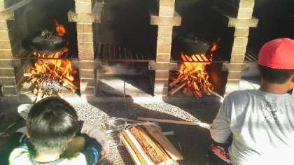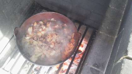 薪を燃やして作るすき焼き風煮。思っているほど簡単ではありません。