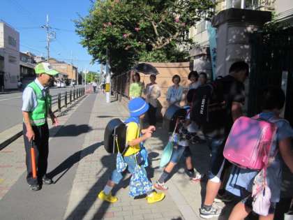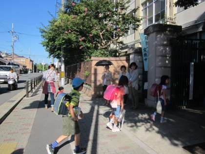 4年生が「みさきの家」に行っているので、今日はPTAの「声かけ登校」1日目です。